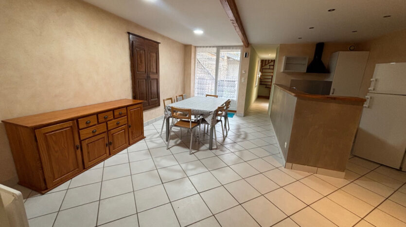 Idéal colocation : Situé à Lons le saunier, cet appartement en duplex se compose au rez de chaussé d’une entrée sur une salle à manger avec une cuisine équipée ouverte, un salon, un dégagement desservant une salle de bain et une chambre.