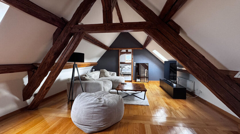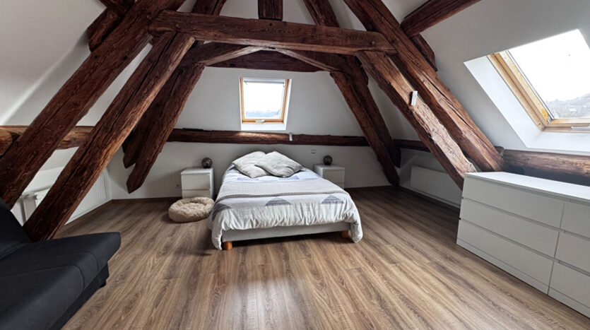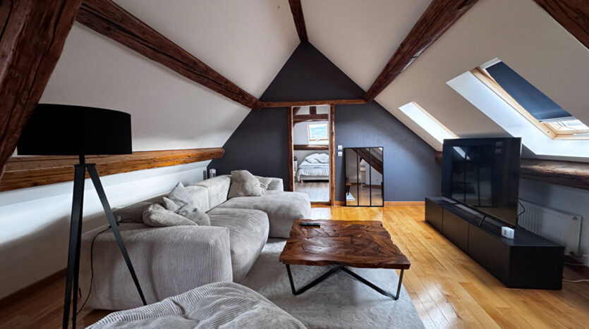 Meublé : Proche du centre ville de Lons le saunier, appartement en duplex meublé et équipé d’une superficie de 83m2.