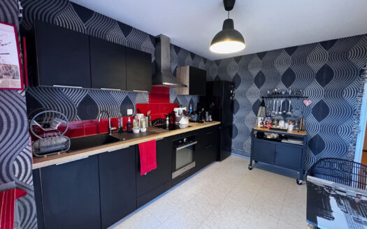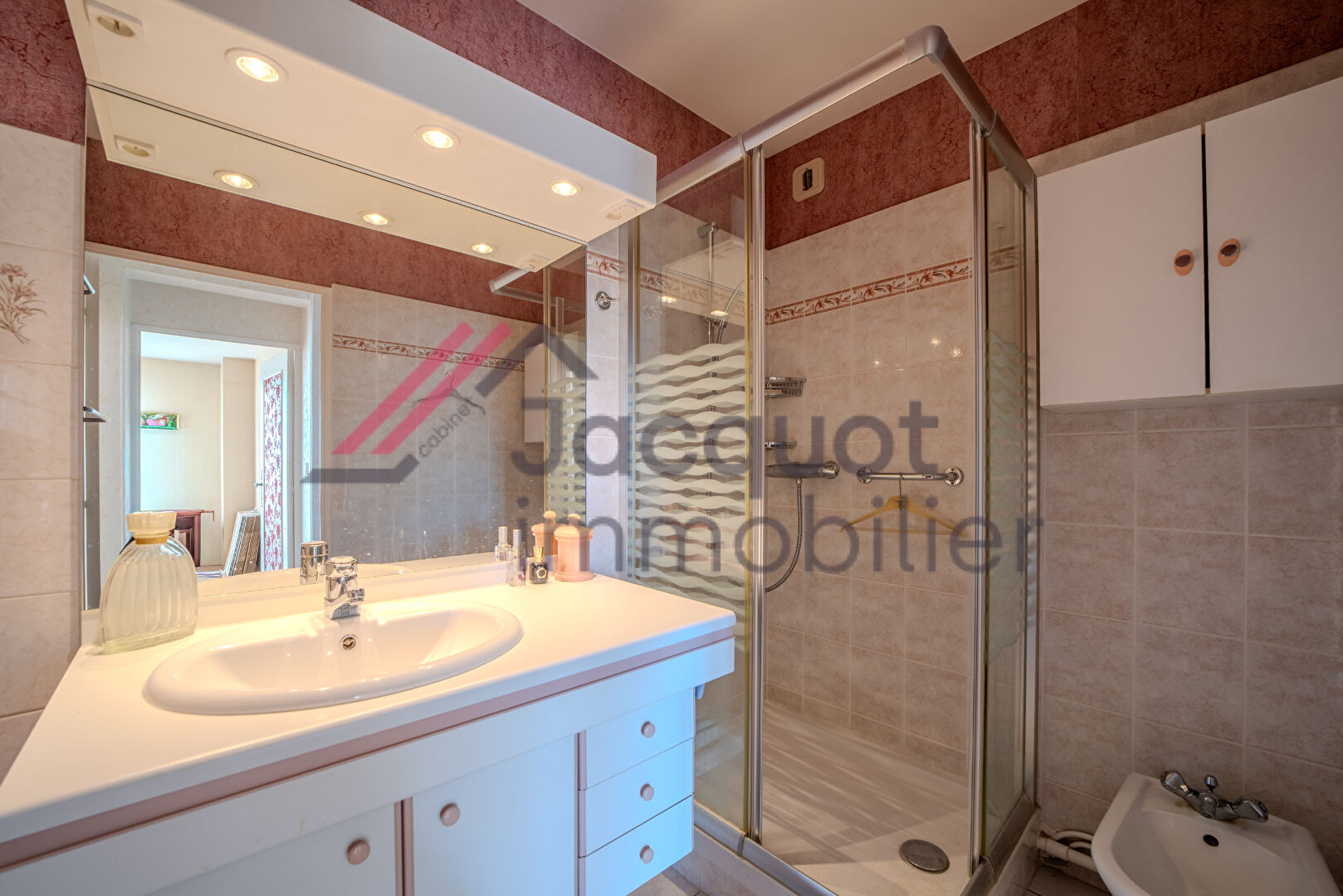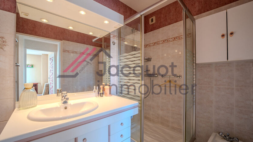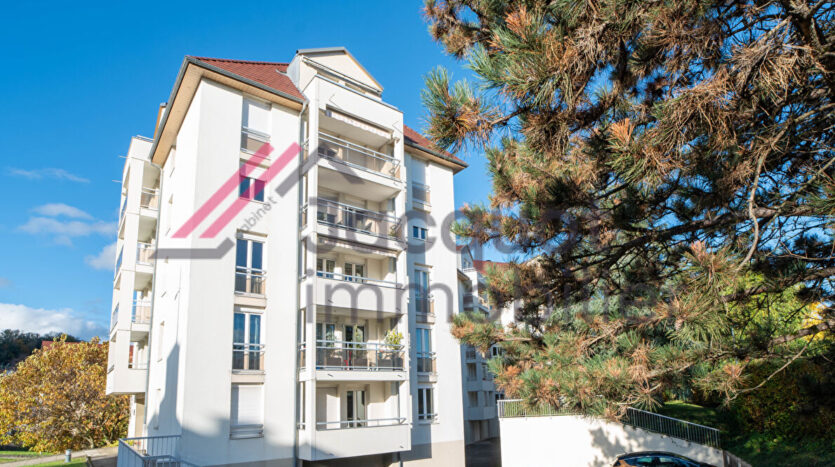 Un garage de 18 m² carrelé avec porte automatique et une cave complètent ce bien. Parking commun à disposition.