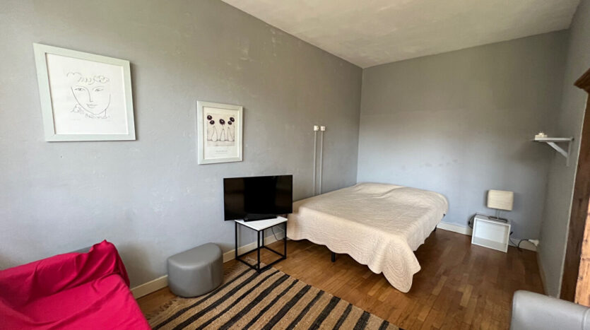 une pièce de vie faisant office de salon / chambre,