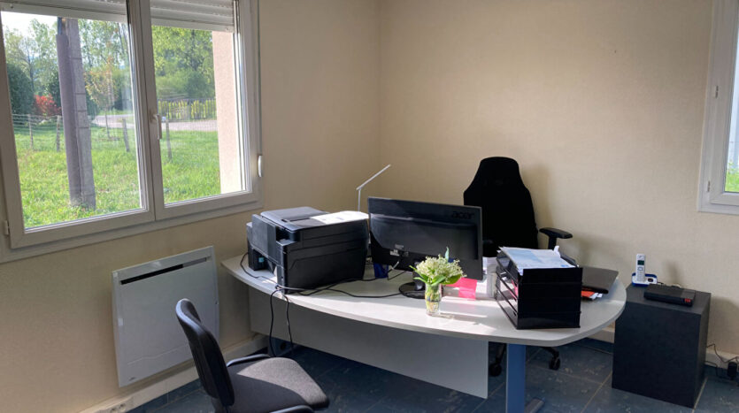 Bureau : Un grand bureau avec espace cuisine et WC, parfaitement adapté pour un espace de travail fonctionnel.