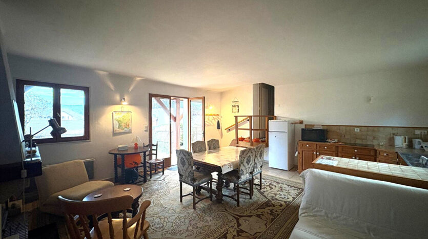Au rez-de-chaussée, vous découvrirez une terrasse, une entrée sur une pièce de vie avec cuisine aménagée et cheminée, apportant charme et authenticité. Ce niveau comprend également une salle de bain avec toilettes ainsi qu’un garage attenant.